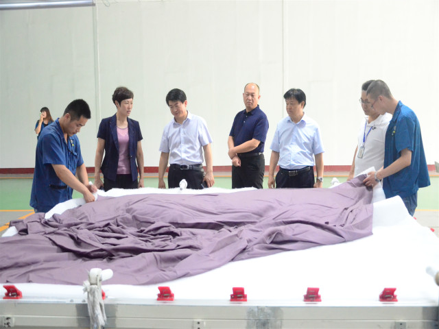 人力行政總監(jiān)孫玉濤介紹了公司發(fā)展的相關(guān)情況,工會主席鄭安江就公司在企業(yè)文化建設(shè)、員工利益保障等相關(guān)工會工作向調(diào)研組進行了詳細匯報。隨后,胡少華一行與公司職工代表面一車間李西洪、家紡成品車間朱永亮和服裝車間溫永霞進行了交流座談,詳細了解了公司在職工培養(yǎng)、福利待遇、權(quán)益維護等方面的具體情況。調(diào)研組一行先后參觀了公司工程技術(shù)研究院、創(chuàng)意中心、花布智能生產(chǎn)車間、家紡成品展廳及車間等處。胡少華表示,公司作為紡織印染行業(yè)的龍頭企業(yè),取得的成績有目共睹,并且公司在維護職工權(quán)益、企業(yè)文化建設(shè)、提升職工素質(zhì)等方面的工作經(jīng)驗值得借鑒和推廣。