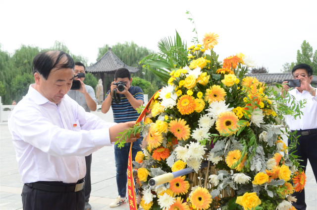 向周恩來總理骨灰撒放地紀(jì)念碑敬獻(xiàn)花籃,拜謁紀(jì)念碑。