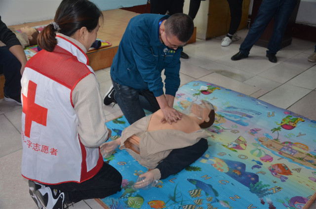 參加培訓(xùn)的安全員通過認真學(xué)習(xí)和按照要求進行實際操作演練,在學(xué)習(xí)心肺復(fù)蘇的操作以及AED的使用,創(chuàng)傷救護止血、包扎、固定、搬運等四大技術(shù)的理論與實際操作基礎(chǔ)上,還認真聆聽了中國紅十字會的發(fā)展歷程以及“三救三獻”的工作職責(zé)。