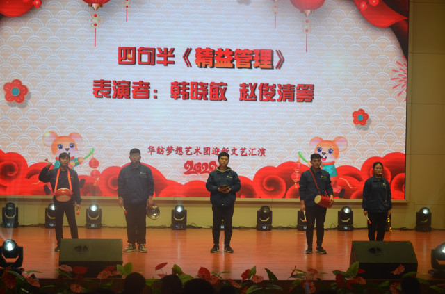 1月4日,繼公司舉行持續(xù)深化精益生產(chǎn)年度總結(jié)動員大會之后,精彩紛呈的“同心筑夢·贏戰(zhàn)2020——華紡夢想藝術(shù)團迎新文藝匯演”與廣大員工見面。整場文藝匯演洋溢著吉祥喜慶的氣氛,充盈著昂揚向上的旋律,展現(xiàn)出華紡人樂觀、奮進的精神風(fēng)貌。