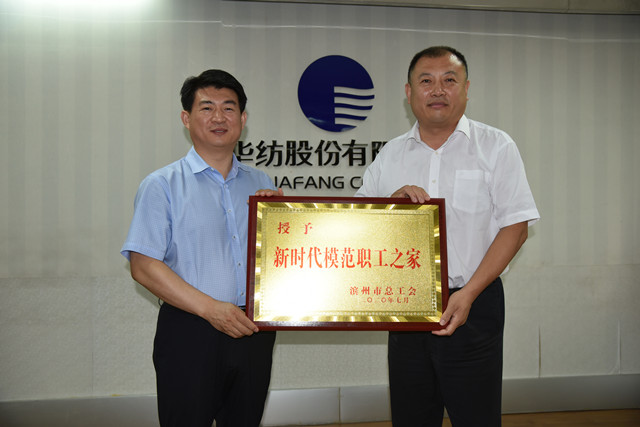 市總工會副主席戴新生在概括講解工會法等方面的知識后談到,華紡作為我市支柱企業(yè),在工會工作方面一直走在前列,在工會組織建設(shè)、民主管理作用發(fā)揮、勞動競賽開展以及打造企業(yè)文化等方面,工作扎實,成效顯著;希望今后繼續(xù)保持優(yōu)勢,不斷取得新的成就。公司副總經(jīng)理孫玉濤代表公司接受獎牌及獎勵牌,并向市總工會一行簡要介紹了公司在推進(jìn)整體轉(zhuǎn)型升級、新舊動能轉(zhuǎn)換及高質(zhì)量發(fā)展方面的成效;公司工會主席鄭安江具體介紹了工會工作情況。