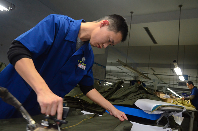 導(dǎo)讀:今年32歲的劉中雪是公司服裝車間的一名整燙工,進(jìn)廠10年來(lái),他每天的工作就是把一件件外銷工裝褲或上衣整燙好。
