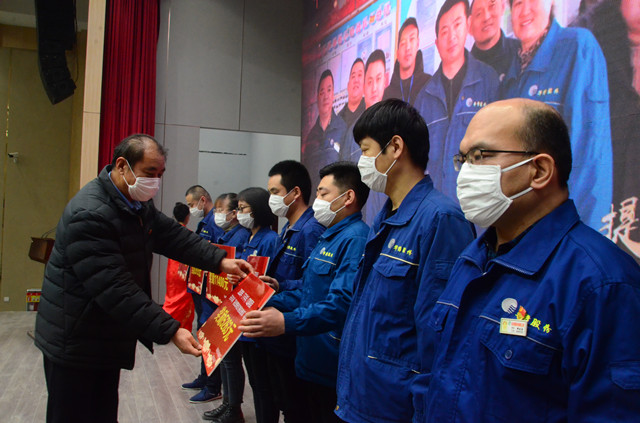 1月16日,公司在嚴(yán)格規(guī)范疫情防控前提下,在公司新近啟用的會(huì)議中心舉行了年度持續(xù)深化精益生產(chǎn)總結(jié)會(huì)議。會(huì)上,公司黨委書記、董事長(zhǎng)王力民為2020年度優(yōu)秀黨支部、優(yōu)秀團(tuán)隊(duì)、優(yōu)秀研發(fā)團(tuán)隊(duì)、勞動(dòng)模范、戰(zhàn)疫優(yōu)秀員工代表頒獎(jiǎng);總經(jīng)理閆英山為“華紡工匠”、十佳精益輪班(工段)長(zhǎng)、十佳精益技術(shù)人員、十佳精益操作能手、優(yōu)秀員工代表頒獎(jiǎng);副總經(jīng)理李風(fēng)明為優(yōu)秀CQI項(xiàng)目、創(chuàng)新攻關(guān)項(xiàng)目、優(yōu)秀精益機(jī)組頒獎(jiǎng)。王力民做了題為《同心同德  繼往開來》的年度工作報(bào)告。會(huì)議由公司團(tuán)委書記陳冰主持。