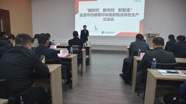 公司黨委副書記盛守祥代表公司,向與會領(lǐng)導及會員單位代表介紹了公司“退城進園”暨“智能綠色工廠建設(shè)項目”、升級印染全流程的智能制造等情況,并圍繞公司近年來大力推進企業(yè)轉(zhuǎn)型升級和新舊動能轉(zhuǎn)換工作,重點介紹了公司在智能智造、綠色生產(chǎn)方面的主要做法與經(jīng)驗。公司副總工程師王國棟對公司近年來推動轉(zhuǎn)型升級及打造“智慧華紡”的整體發(fā)展成效,作了專題報告。