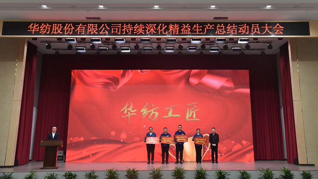 會上,公司董事長盛守祥為2021年度優(yōu)秀團隊、勞動模范頒獎;總經(jīng)理閆英山為華紡工匠、十佳精益輪班(工段)長、十佳技術(shù)能手、十佳操作能手、優(yōu)秀員工代表頒獎;質(zhì)量總監(jiān)李風明為優(yōu)秀CQI項目、創(chuàng)新攻關(guān)項目、優(yōu)秀精益機組代表頒獎。公司對在過去一年的“我與效益提升”工作中表現(xiàn)良好的原料運營公司等10個部門給予了通報表揚;“退城進園”暨“智能綠色工廠建設項目”整體建設與搬遷,成為“2021-華紡年度感動”內(nèi)容。