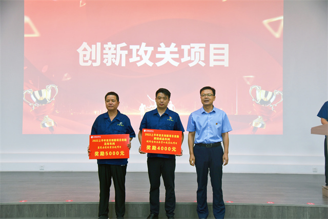 會(huì)上,李風(fēng)明宣讀了公司對(duì)2022年上半年度CQI項(xiàng)目、創(chuàng)新攻關(guān)成果等表彰決定;盛守祥為CQI項(xiàng)目代表、創(chuàng)新攻關(guān)一等獎(jiǎng)項(xiàng)目代表頒發(fā)獎(jiǎng)勵(lì)牌,總經(jīng)理閆英山為各車間創(chuàng)新攻關(guān)其他受獎(jiǎng)項(xiàng)目代表頒發(fā)獎(jiǎng)勵(lì)牌,李風(fēng)明為質(zhì)量之星、效率之星、工藝操作之星受獎(jiǎng)代表頒發(fā)榮譽(yù)證書,公司安全總監(jiān)孫中然為現(xiàn)場(chǎng)6S之星、精益提案之星受獎(jiǎng)代表頒發(fā)榮譽(yù)證書。會(huì)議由公司團(tuán)委書記陳冰主持。