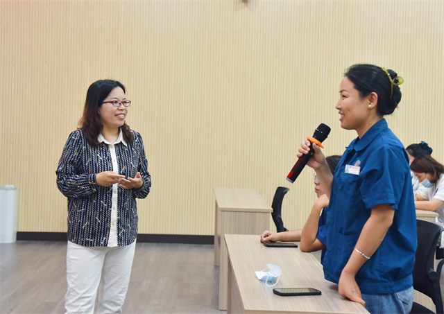 講座過程中,王春梅解讀了在家庭教育中“表達情緒”代替“用情緒表達”的內(nèi)涵和意義。在就如何引導孩子正確感悟、培養(yǎng)孩子養(yǎng)成良好習慣、給予孩子成長力量等方面,通過講理論、舉實例、現(xiàn)場討論等形式,深入淺出的為女職工進行了分析和授課。