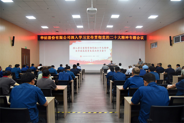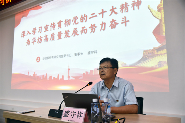 盛守祥指出,黨的二十大是在全黨全國各族人民邁上全面建設(shè)社會主義現(xiàn)代化國家新征程、向第二個(gè)百年奮斗目標(biāo)進(jìn)軍的關(guān)鍵時(shí)刻召開的一次十分重要的大會,是一次高舉旗幟、凝聚力量、團(tuán)結(jié)奮進(jìn)的大會。大會回顧總結(jié)了過去五年的工作和新時(shí)代十年的偉大變革,闡述了開辟馬克思主義中國化時(shí)代化新境界、中國式現(xiàn)代化的中國特色和本質(zhì)要求等重大問題,對全面建設(shè)社會主義現(xiàn)代化國家、全面推進(jìn)中華民族偉大復(fù)興進(jìn)行了戰(zhàn)略部署。也為我們?nèi)A紡事業(yè)高質(zhì)量發(fā)展指明了前進(jìn)方向。華紡作為中國紡織印染行業(yè)重要骨干力量,將堅(jiān)決貫徹黨的二十大精神,牢牢把握新時(shí)代新征程黨的使命任務(wù),自覺把責(zé)任擔(dān)當(dāng)放在心上、扛在肩上,以高質(zhì)量發(fā)展為目標(biāo),踔厲奮發(fā)推進(jìn)高水平現(xiàn)代化企業(yè)建設(shè)。