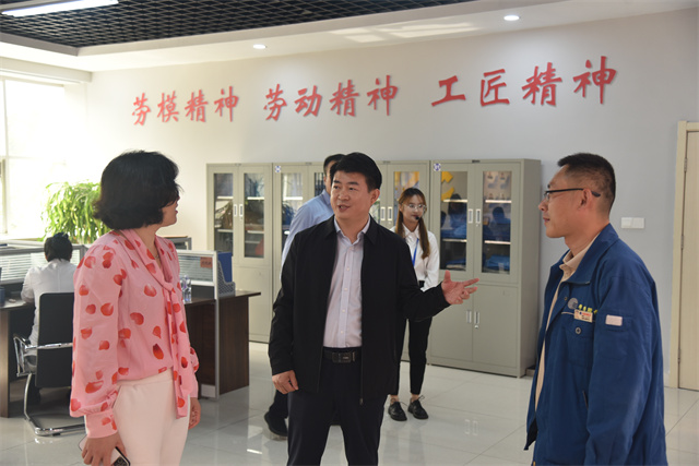 10月12日,山東省總工會(huì)生產(chǎn)保護(hù)部副部長(zhǎng)張艷麗帶領(lǐng)“省全員創(chuàng)新企業(yè)”、“齊魯工匠”考察組,來(lái)到公司對(duì)全員創(chuàng)新工作開(kāi)展情況以及“齊魯工匠”候選人王魯剛同志進(jìn)行考察。市總工會(huì)黨組成員、四級(jí)調(diào)研員鮑永翔,市總工會(huì)生產(chǎn)保護(hù)部部長(zhǎng)蔡曉林,公司黨委委員、人力資源與行政總監(jiān)孫玉濤陪同考察。