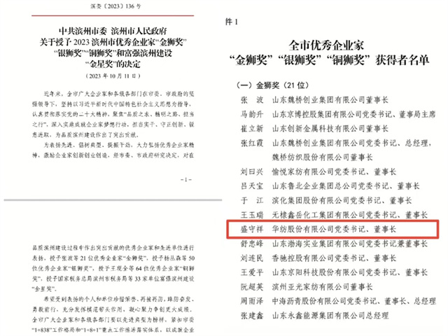 據(jù)了解,這是公司連續(xù)五次榮獲濱州市優(yōu)秀企業(yè)家“金獅獎(jiǎng)”榮譽(yù),作為濱州市五大千億級(jí)產(chǎn)業(yè)集群中智能紡織板塊的重要組成部分,公司積極打造“數(shù)字華紡”,完成智能綠色工廠項(xiàng)目,改變了傳統(tǒng)的管理思維定式,為傳統(tǒng)產(chǎn)業(yè)通過(guò)現(xiàn)代科技手段改造獲得有益的嘗試與探索,成為行業(yè)智能化印染工廠新標(biāo)桿;在市場(chǎng)方面,公司積極擴(kuò)大國(guó)外市場(chǎng),開(kāi)拓國(guó)內(nèi)市場(chǎng),把握國(guó)內(nèi)國(guó)際最新市場(chǎng)動(dòng)態(tài),優(yōu)化產(chǎn)品結(jié)構(gòu),準(zhǔn)確市場(chǎng)定位,提高產(chǎn)品市場(chǎng)競(jìng)爭(zhēng)力,實(shí)現(xiàn)國(guó)內(nèi)國(guó)外雙循環(huán);在技術(shù)創(chuàng)新方面,以“做好自己的事情”為前提,不遺余力地推動(dòng)公司科技進(jìn)步與創(chuàng)新,堅(jiān)持依靠科技創(chuàng)新提升企業(yè)的核心競(jìng)爭(zhēng)力,持續(xù)做好新技術(shù)、新工藝、新產(chǎn)品的研究和應(yīng)用,充分發(fā)揮“八大科研平臺(tái)”作用,不斷形成新理論、新工藝,增強(qiáng)持續(xù)創(chuàng)新的能力。