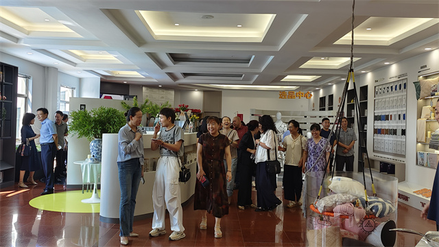 在華紡股份黨委書(shū)記、董事長(zhǎng)盛守祥的帶領(lǐng)下,大家來(lái)到華紡老廠(chǎng)區(qū),那里陳列著一幅幅彌足珍貴的歷史照片,它們鐫刻著大家共同奮斗的往昔歲月。在這些影像前,老員工們的思緒仿佛瞬間被拉回到那激情澎湃的年代,熟悉的面容、難忘的瞬間,一一重現(xiàn)眼前,喚起了無(wú)數(shù)美好回憶。緊接著,大家又來(lái)到華紡股份新廠(chǎng)區(qū),參觀(guān)了智云中心、檢測(cè)中心、綜合辦公區(qū)、服裝面料公司、花布公司、家紡公司、創(chuàng)意中心、工程技術(shù)研究院等區(qū)域。每一步腳印,皆見(jiàn)證著公司的歷史演進(jìn);每一處細(xì)節(jié),皆彰顯出公司對(duì)技術(shù)創(chuàng)新與產(chǎn)品升級(jí)的執(zhí)著追求。
