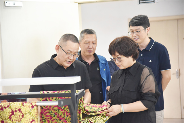 5月28日,由中國紡織行業(yè)創(chuàng)意與協(xié)同設(shè)計重點實驗室主任李斌紅、中國紡聯(lián)生產(chǎn)力促進部副主任、中國紡織信息中心產(chǎn)品開發(fā)部主任陳小麗帶隊的“紡織行業(yè)產(chǎn)品開發(fā)創(chuàng)新秘書處調(diào)研專家組”到公司進行考察調(diào)研。公司黨委書記、董事長盛守祥,副總經(jīng)理王超,技術(shù)總監(jiān)、工程技術(shù)研究院院長孫紅玉陪同調(diào)研。