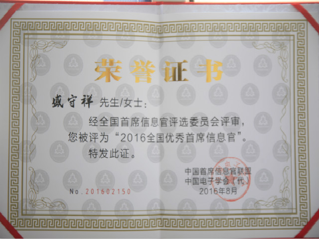 盛守祥榮獲全國優(yōu)秀首席信息官稱號