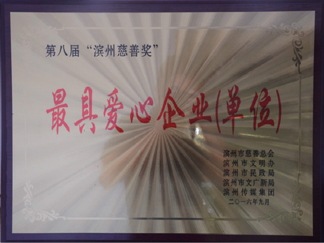 導(dǎo)讀:我公司在第八屆“濱州慈善獎(jiǎng)”評(píng)選表彰活動(dòng)中榮獲“最具愛心企業(yè)(單位)”稱號(hào)。