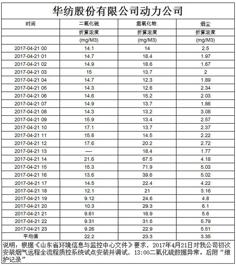 煙氣排放數(shù)據(jù)信息公開2017.4.21數(shù)據(jù)