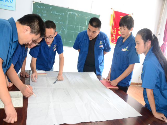 在服裝車間技術科,經常能看到這樣的情景:技術人員“一言不合”,就到會議室展開討論。每當有新產品要做或者大家有不同意見的時候,都會選擇在會議室的黑板上寫寫畫畫,把打版的每個數(shù)據寫上畫上,一起來討論每一個數(shù)值及每一條線的弧度,直到制定出合理的方案。