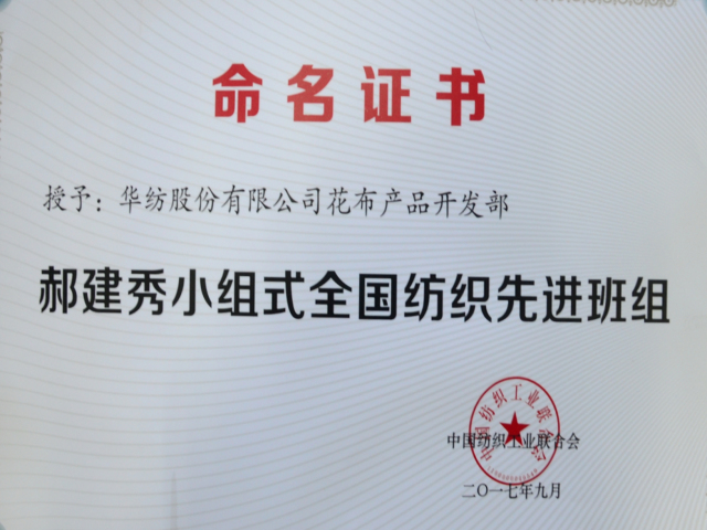 導讀:公司花布產(chǎn)品設計開發(fā)部榮獲郝建秀小組式全國紡織先進班組。