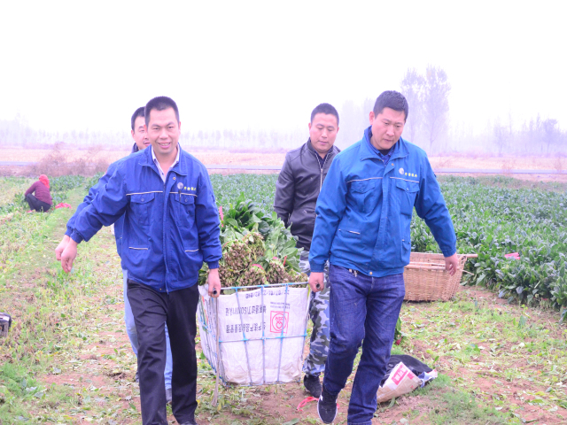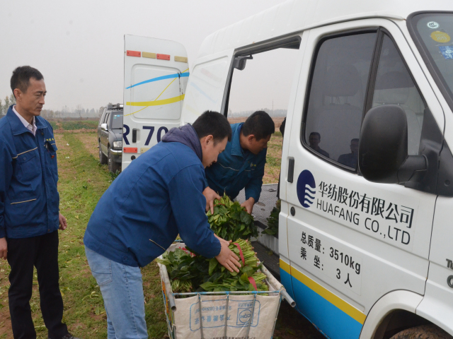 經(jīng)過(guò)進(jìn)一步溝通,公司決定采購(gòu)菠菜3000斤,同時(shí)為了減少合作社的成本,公司組織人工和食堂、車隊(duì)的兩輛貨車自行到菜地拉菜,經(jīng)過(guò)一上午的整理、裝車,滿滿的兩車“愛(ài)心”菠菜駛出菜地,為菜農(nóng)們?cè)诙绽飵?lái)溫暖。