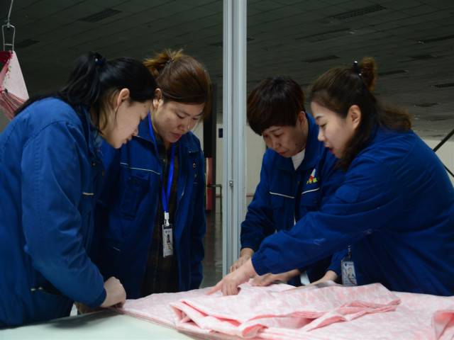 公司家紡成品車間是一個(gè)以女工為主導(dǎo)的團(tuán)隊(duì),女工比例達(dá)72%,女工分布在管理、技術(shù)、生產(chǎn)操作等各個(gè)崗位。她們?cè)谌粘Ia(chǎn)工作中以追求優(yōu)質(zhì)高效為目標(biāo),在每個(gè)生產(chǎn)環(huán)節(jié)嚴(yán)格執(zhí)行精益生產(chǎn)的標(biāo)準(zhǔn)與流程,不斷創(chuàng)造出新的生產(chǎn)紀(jì)錄。