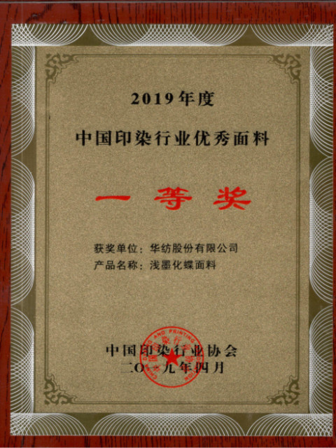 在剛剛結(jié)束的由中國(guó)印染行業(yè)協(xié)會(huì)舉辦的2019年度“中國(guó)印染行業(yè)優(yōu)秀面料”評(píng)選活動(dòng)中,公司3套作品從參評(píng)的384個(gè)產(chǎn)品中脫穎而出,獲得表彰。其中,淺墨化蝶面料產(chǎn)品獲得一等獎(jiǎng),鳳尾花面料和幻影面料獲得二等獎(jiǎng),這也是公司面料產(chǎn)品再一次獲得行業(yè)表彰和認(rèn)可。